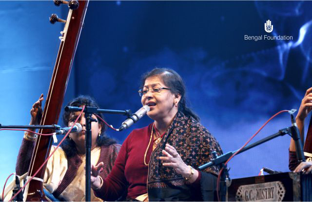 Subhra Guha comes from a music loving family. She received her earliest training from the late Satish Bhowmick and later took advanced training from the Late Pandit Sunil Bose. In 1982, she joined the prestigious ITC Sangeet Research Academy in Kolkata. Subsequently, she also received training and guidance from stalwarts Late Pandit K G Ginde and Late Pandit D T Joshi. She went on to become a guru of the Academy between 1992 and 2003 and has recently rejoined the Academy. Today, Subhra has gained recognition for her thumri renditions in the Poorab Ang.