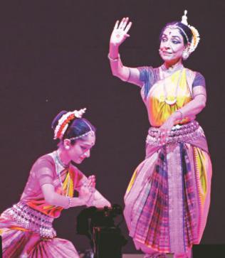 Arushi (L) and Vidushi Madhavi Mudgal create a captivating moment.